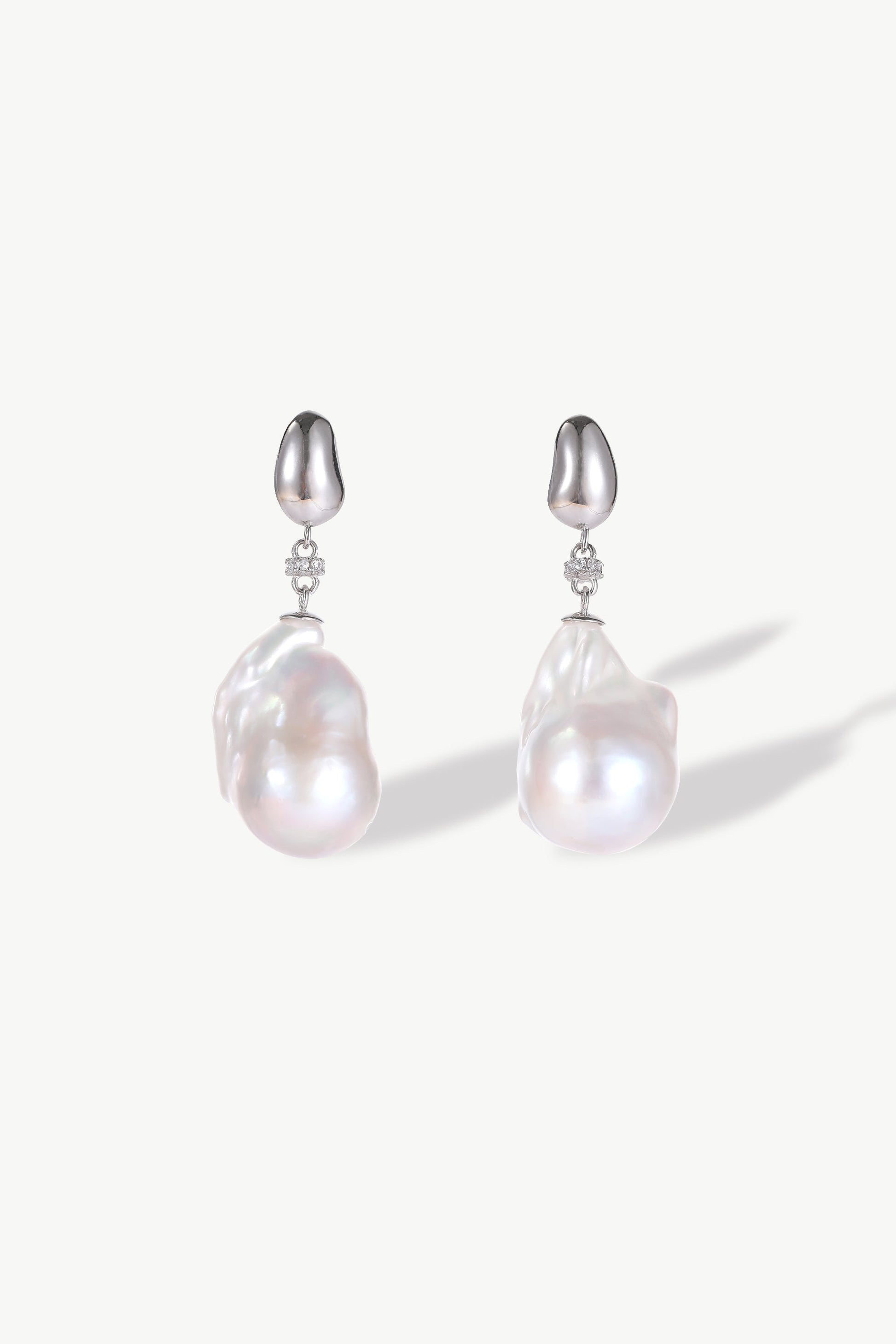 These stunning earrings are made with luminous natural baroque pearls that are set in silver. The natural pearls are a beautiful white color and have a unique, irregular shape that gives them a touch of luxury. The earrings are suspended from a 925 sterling silver post and have a tiny sparkle bead decorated. These earrings are perfect for any occasion, from a special event to everyday wear. They are sure to turn heads and make a statement. Doris baroque pearl drop earrings come in both large and small sizes.