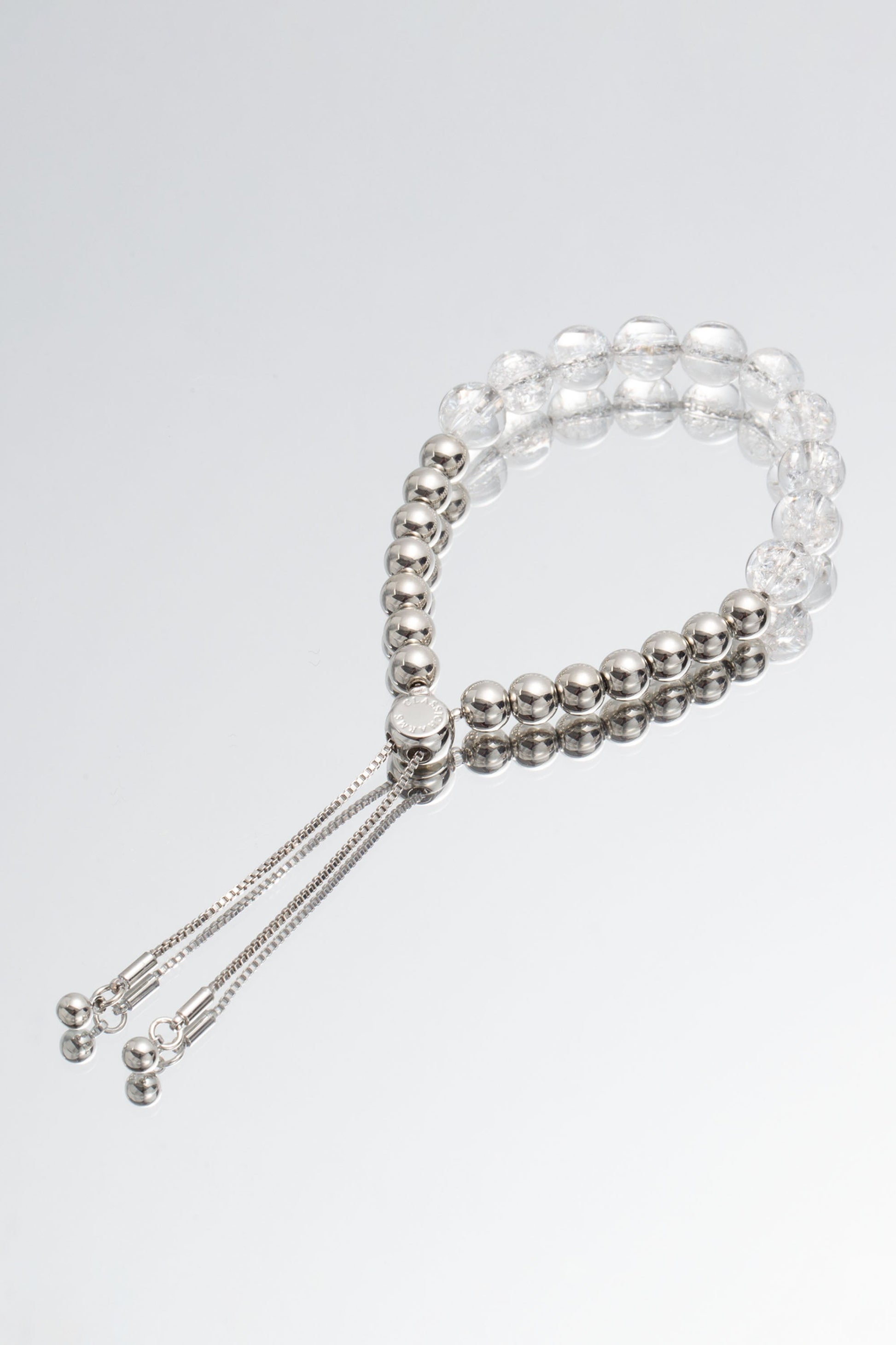 This stunning bracelet showcases a perfect blend of sleek silver beads and miniature Azeztulite crystal spheres delicately suspended from a fine curb chain, creating a harmonious fusion of elegance and mystique.