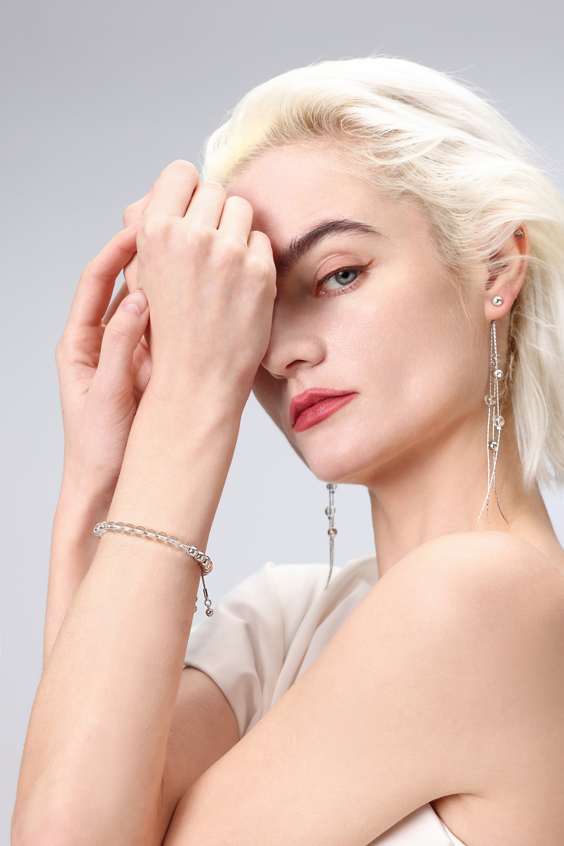 Adorn your wrist with this beautiful bracelet–a true manifestation of luminosity and crystal energy. The bracelet is now available in both gold and silver options. Choose the metal that resonates with your personal style and effortlessly elevate your look with this versatile piece.