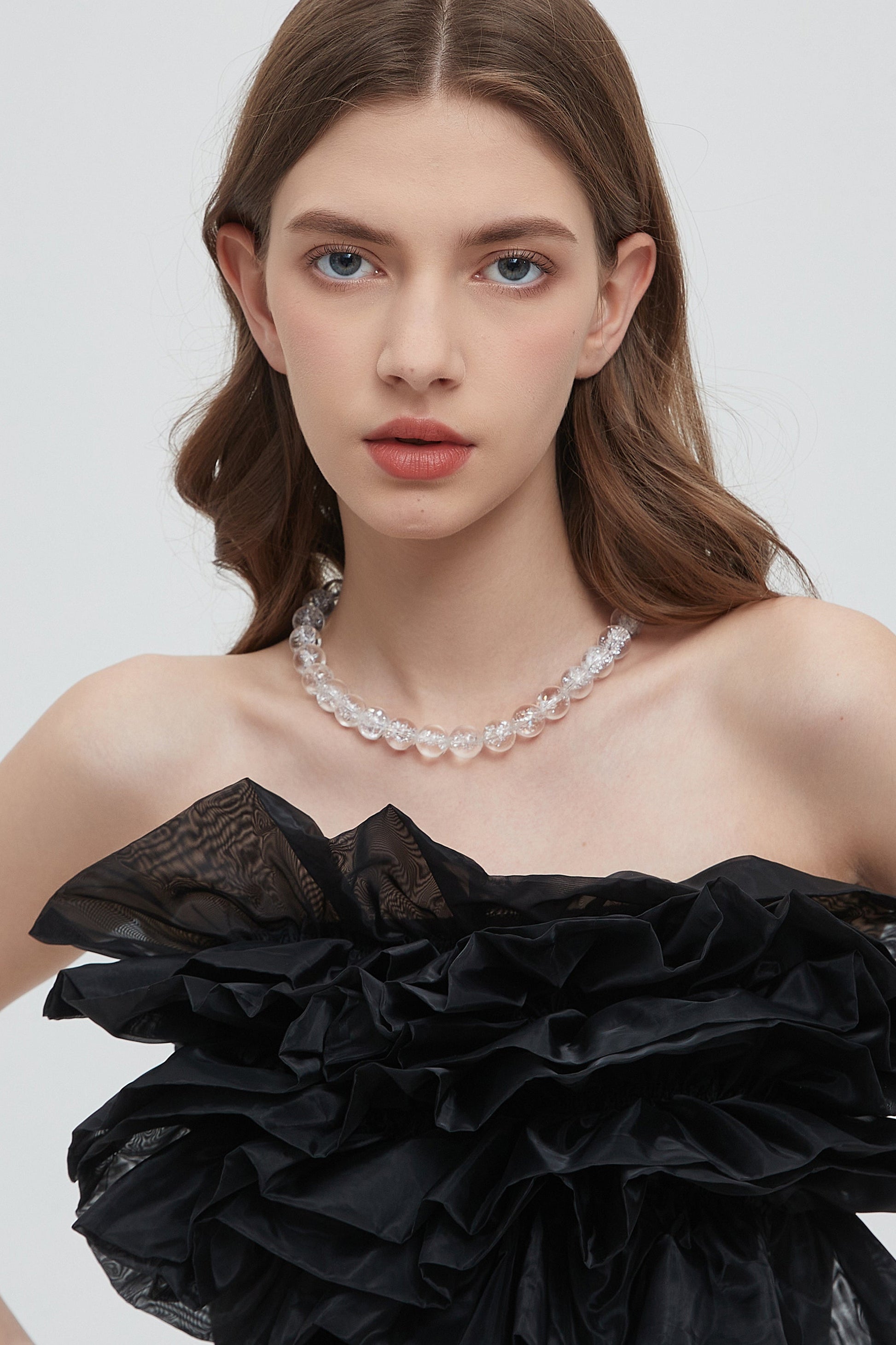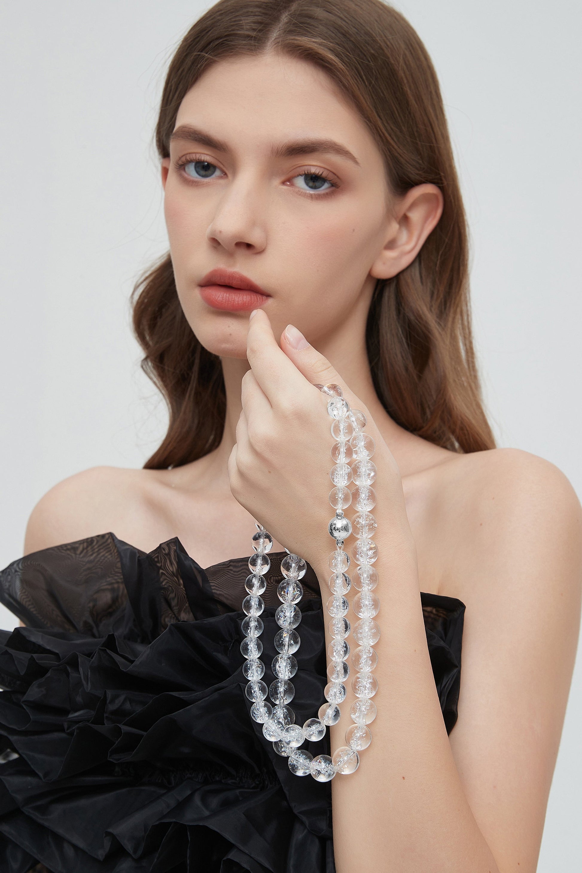 This necklace boasts clear crystal spheres and a single luminous silver sphere with a hidden magnetic closure. The large Azeztulite Clear Phantom Crystal Sphere, meticulously crafted to showcase its ethereal beauty and mesmerizing phantom formations. Each sphere is a unique wonder of nature, radiating a celestial allure that speaks to the soul. The subtle clarity of Azeztulite are complemented by the radiant silver metal, creating a harmonious fusion of earthly and celestial beauty. Whether worn as a daily reminder of inner beauty or as an eye-catching statement piece for special occasions, its celestial energy will illuminate your path with grace and radiance.
