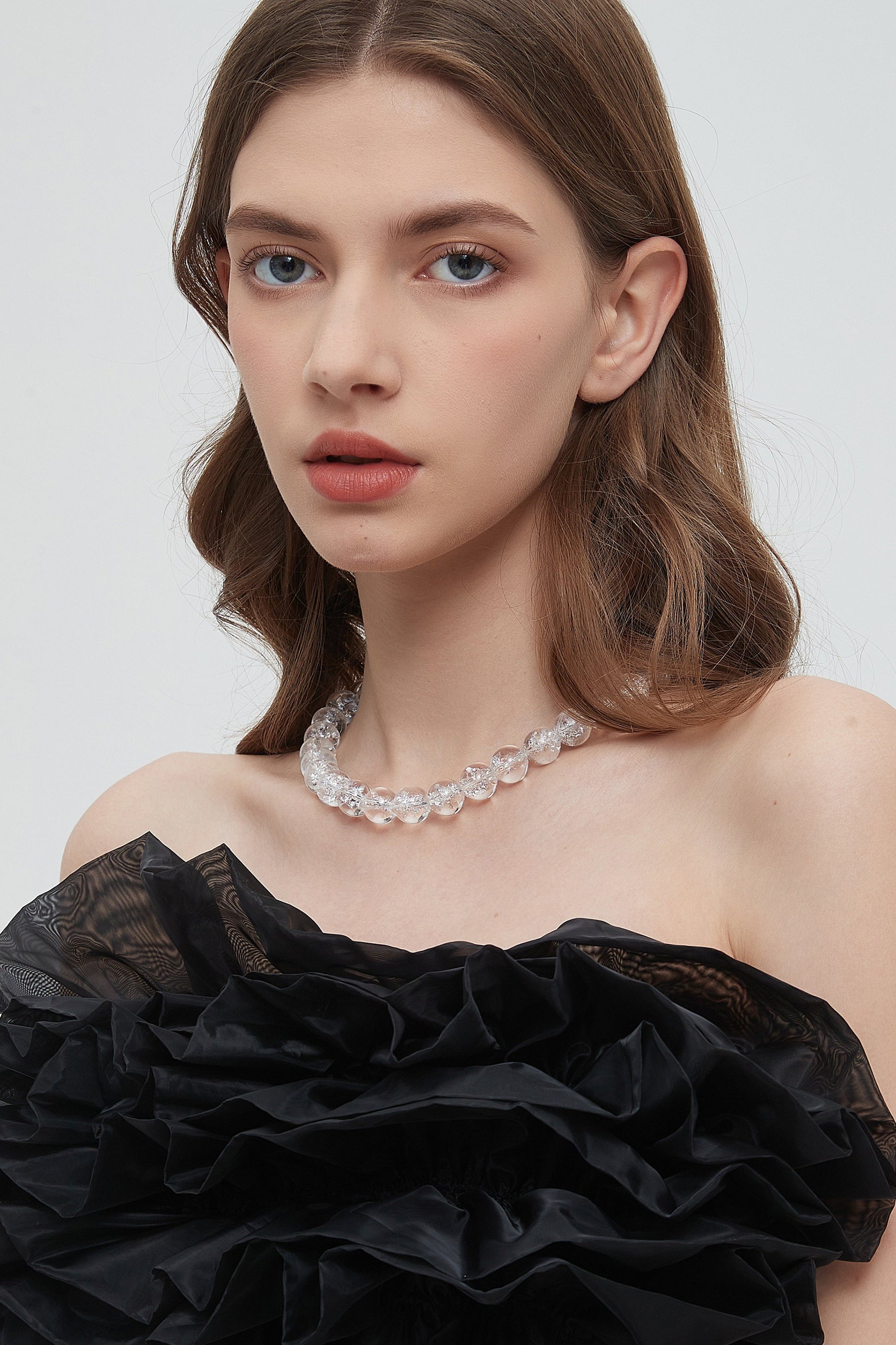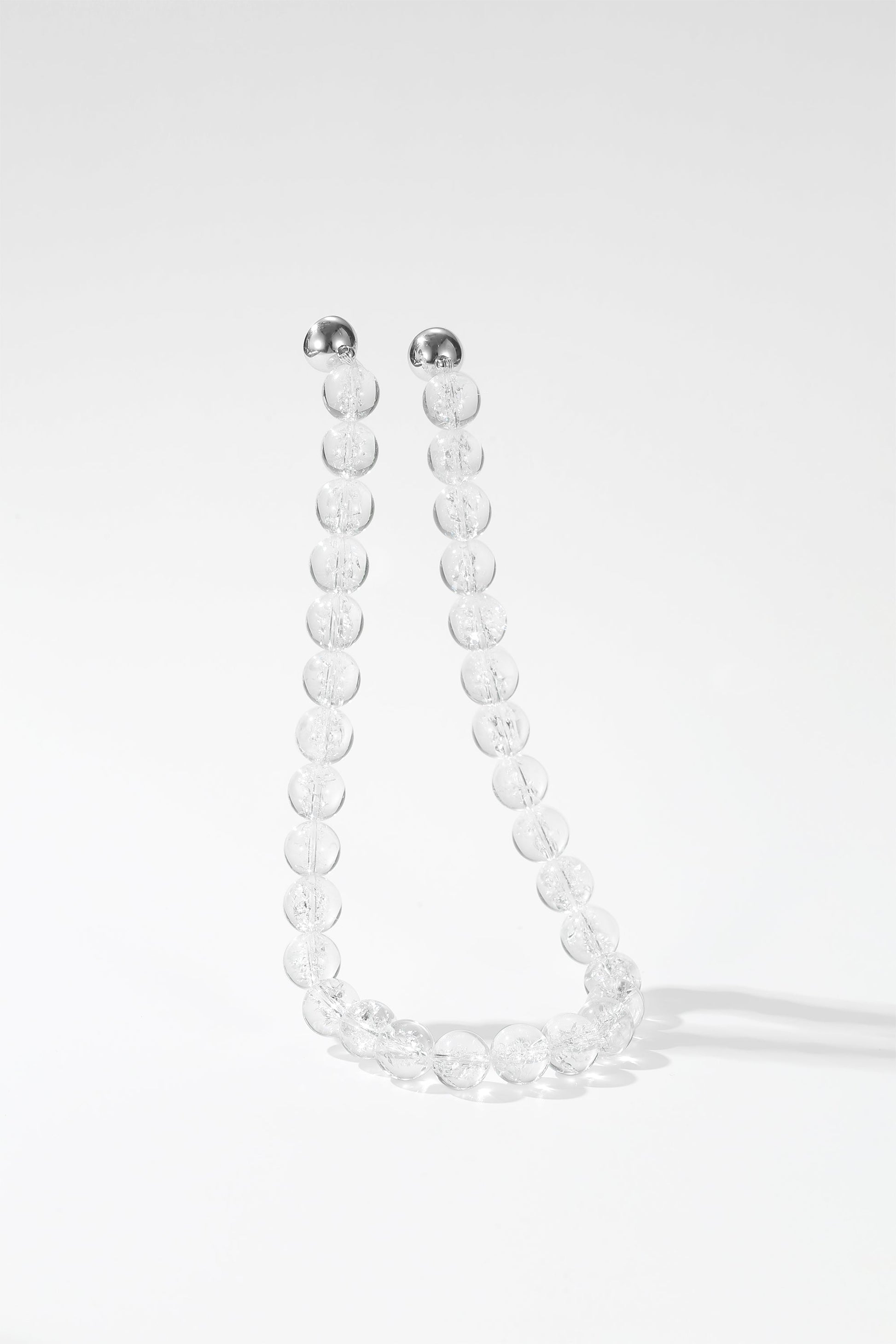 Frostnova Azeztulite Clear Phantom Large Crystal Sphere Necklace-Silver 14mm