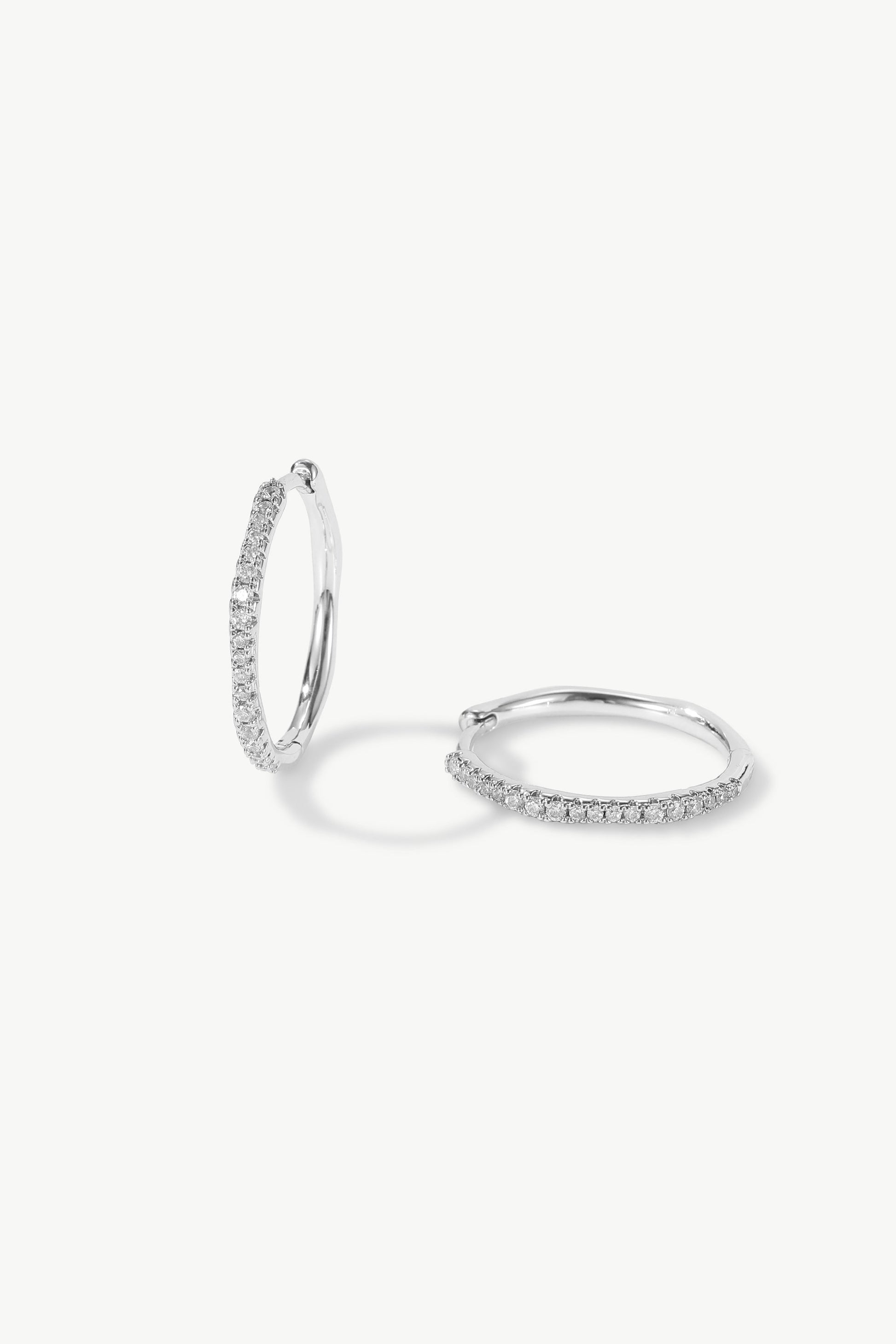The slender silver hoops embrace a contemporary and refined aesthetic, embracing simplicity as the ultimate form of glamour.?They are a testament to the timeless elegance that comes from the harmonious blend of?cold silver and the scintillating brilliance of cubic zircons. Crafted with precision and finesse, the delicate hoops exude a captivating aura that gracefully adorns your ears. The lustrous?silver hoops provide a classic backdrop for the star of the show and give an irresistible sparkle that catches the eye from every angle.